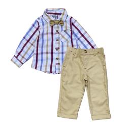 Dapper Dude Baby Boy Luxurious Plaid Button down Shirt, Pants & Bowtie Set