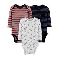 So sweet and cozy in soft ribbed cotton, this 3-pack set of long-sleeve bodysuits from Child Of Mine by Carter's is a must-have in every little guy's wardrobe for fall. With a henley style in the mix, his first little looks will be inspired. Like all basics made by Carter's, each bodysuit in this pack is made with strong snaps made to keep up with wear, wash, repeat. Overlap shoulders make over-the-head dressing easy and each piece is tagless for no itchies!