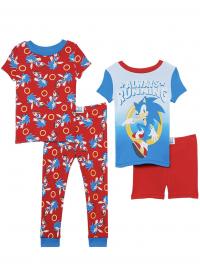 GREAT CHARACTER DESIGN AND ALLOVER PATTERN- This Sonic pajama set features 4 pieces, 2 short sleeve shirts, and pajama pants and shorts. One of the sets features Sonic with always running with matching shorts. The other set features a wonderful allover pattern on the pants and shirt.