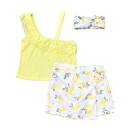 Little Lass Toddler Girl Luxe 3-Piece Yellow top, Skort & Headband Set