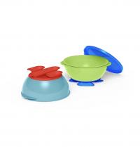 The NUK First Essentials Tri-Suction Bowls help make mealtime with your little one less messy. These bowls feature three suction cups on the bottom to help keep the bowl in place, preventing messes and spills. The deep rounded sides make scooping easy for your little one while the leak-proof lid is perfect for convenient storage. In a pack of two, these 100% leak-proof and spill-proof bowls are ideal for traveling with your little one. These bowls come in fun and bright colors that are sure to delight your little one. Recommended for toddlers ages six months and up, these bowls are soon to be your new favorite mess-free bowls for every meal. Enjoy a mess-free meal time with NUK First Essentials Tri-Suction Bowls.